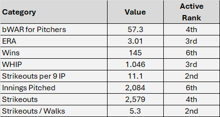 So, what will Chris Sale’s legacy be? The answer is he’s already one of the best pitchers of all time. Here’s how he ranks versus active pitchers:
