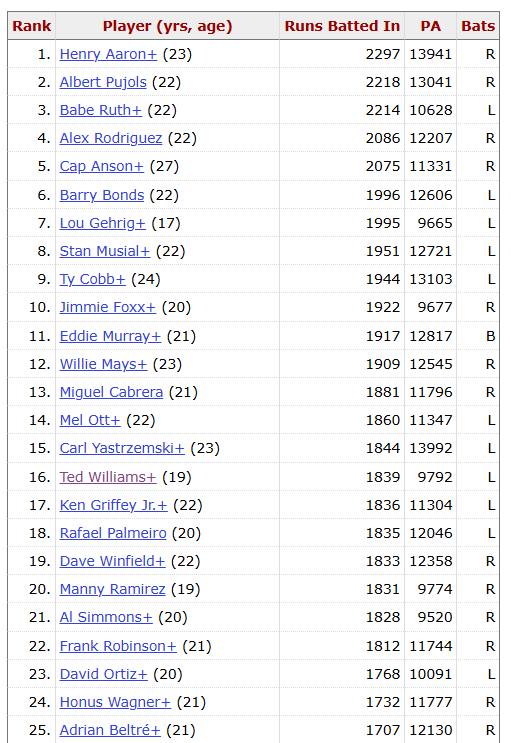 So back to the original question, how much should we value RBIs? I will start with this. Here are the all-time MLB leaders in RBIs: